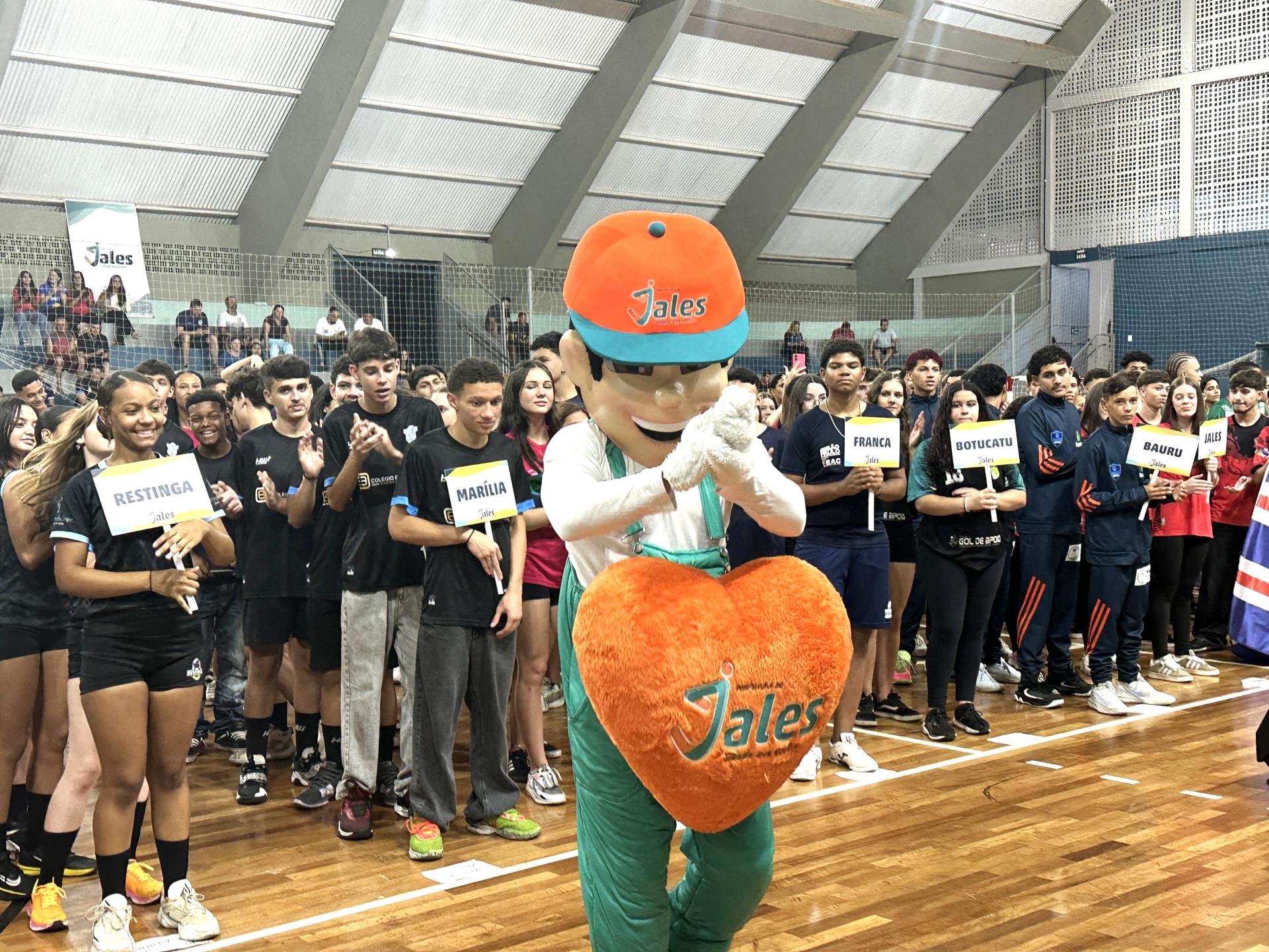 Após os agradecimentos institucionais, incluindo o reconhecimento ao apoio dos alunos do Grêmio Estudantil da Escola Estadual Dr. Euphly Jalles, iniciou-se a entrada das delegações. Sob aplausos do público, atletas de cidades como Barretos, Bauru, Birigui, Botucatu, Catanduva, Franca, Garça, Jundiaí, Lucélia, Marília, Mongaguá, Restinga, Ribeirão Preto, Rio Claro, Santa Adélia, São José dos Campos, Sorocaba, Taquaritinga, Taubaté, Tietê e da própria Jales desfilaram pela quadra, em um dos momentos mais vibrantes da noite, acompanhados pela animação do mascote oficial do munícipio, o Jalito.