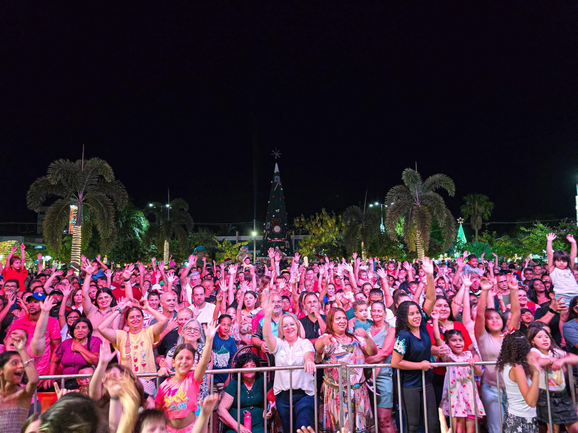 Um dos destaques da noite foi a chegada do Papai Noel, que apareceu acompanhado dos personagens da Turma Du Avesso e do mascote da cidade, o querido Jalito, emocionando o público que lotou a Praça Dr. Euphly Jalles. Para encerrar a noite com chave de ouro, a Banda Jafferson realizou um show marcante, pelo quinto ano consecutivo, que colocou todos para cantar e celebrar a magia do Natal.