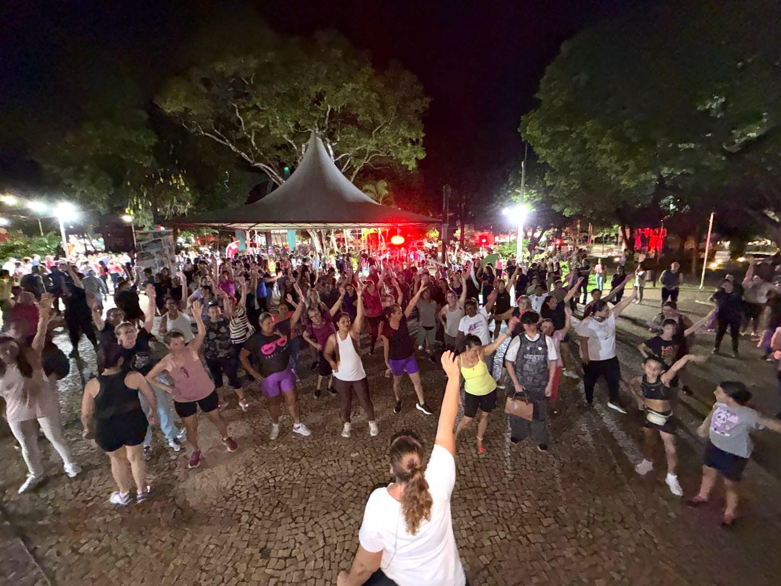 Já no período noturno, a caminhada marcou o ponto alto do evento, reunindo participantes de todas as idades em um momento de integração e celebração. Antes do início do percurso, a professora Silvia Reis Lourenção conduziu um momento de aquecimento com os participantes.